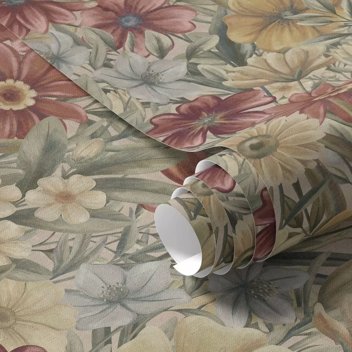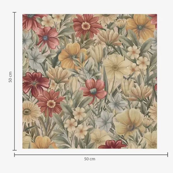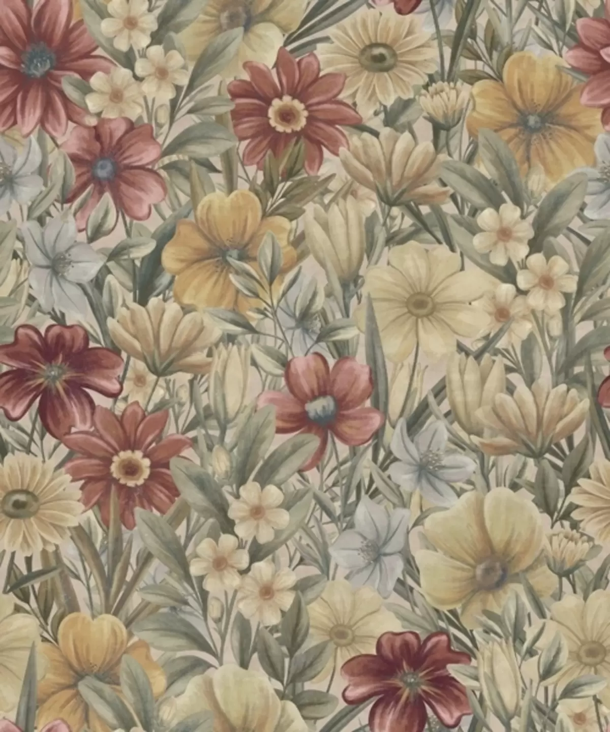 Fototapetai Vintage pievos žydi šiltais geltonais, raudonais ir šalavijų atspalviais Nr. a00906