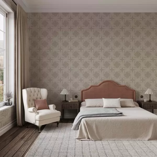 Fototapetai Kakavos linijų tinklelis su mažais centriniais kryželiais, smėlio spalvos Nr. a00911