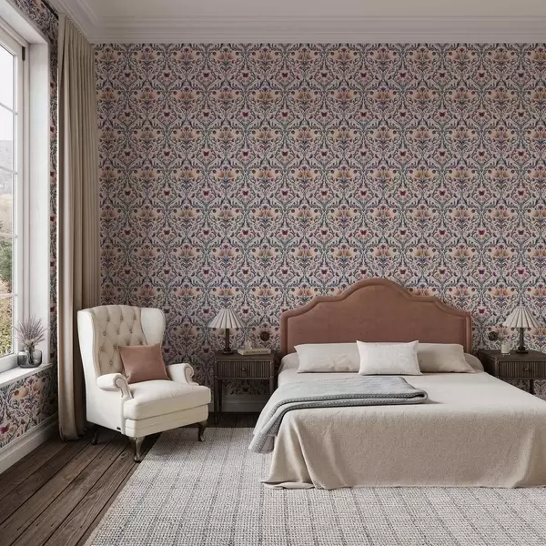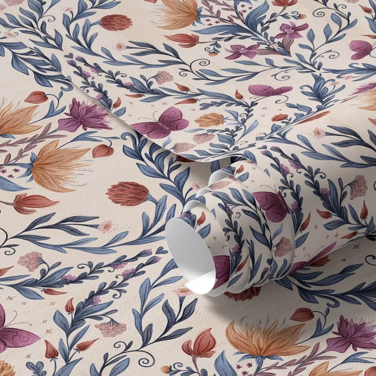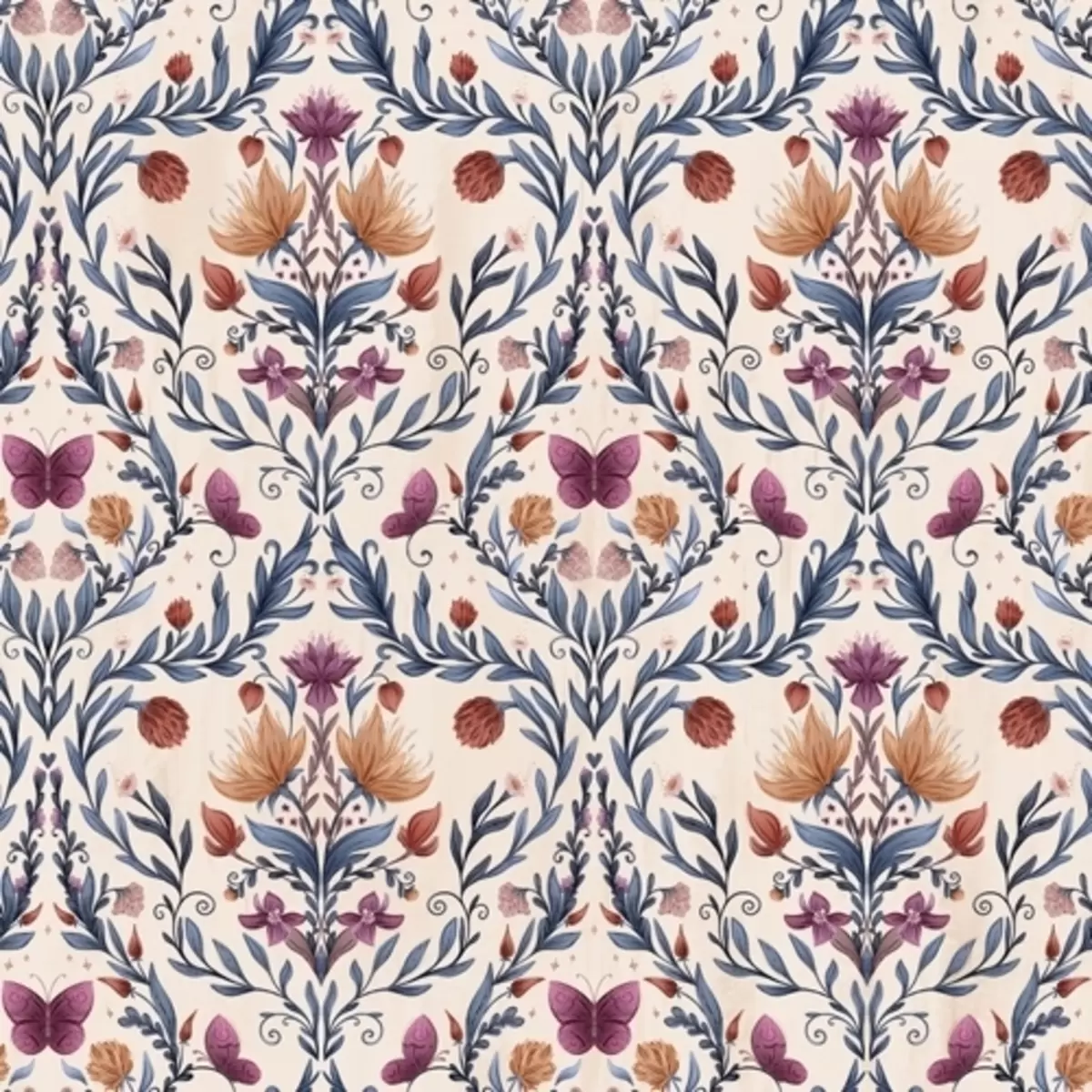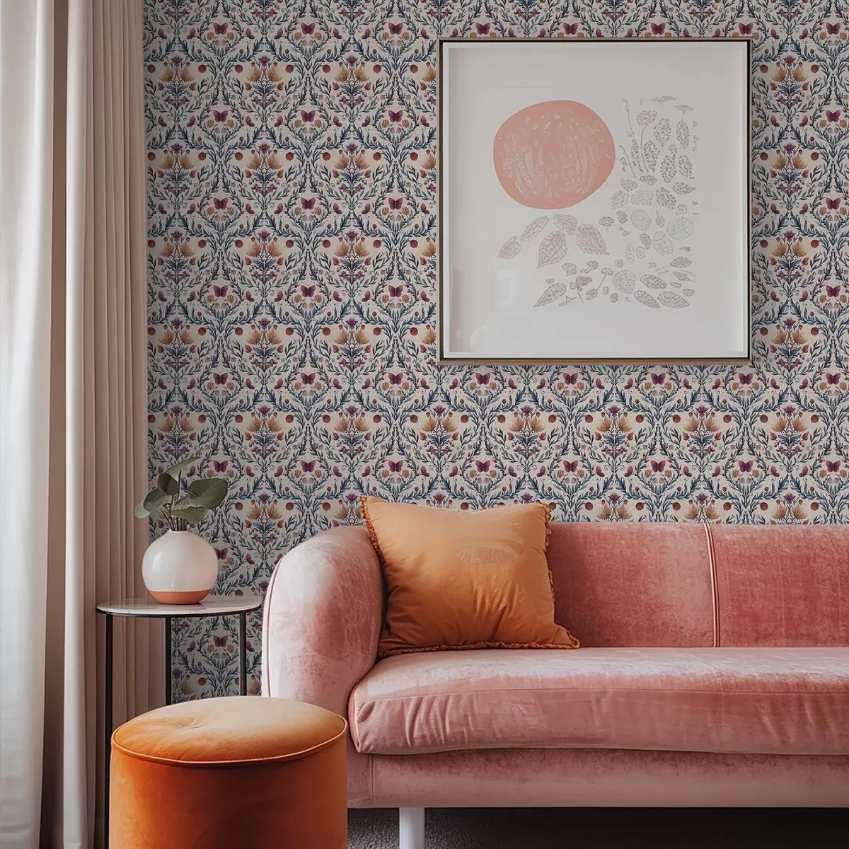 Fototapetai Gėlių damastas su drugeliais ant švelnaus persikų fono Nr. a00926