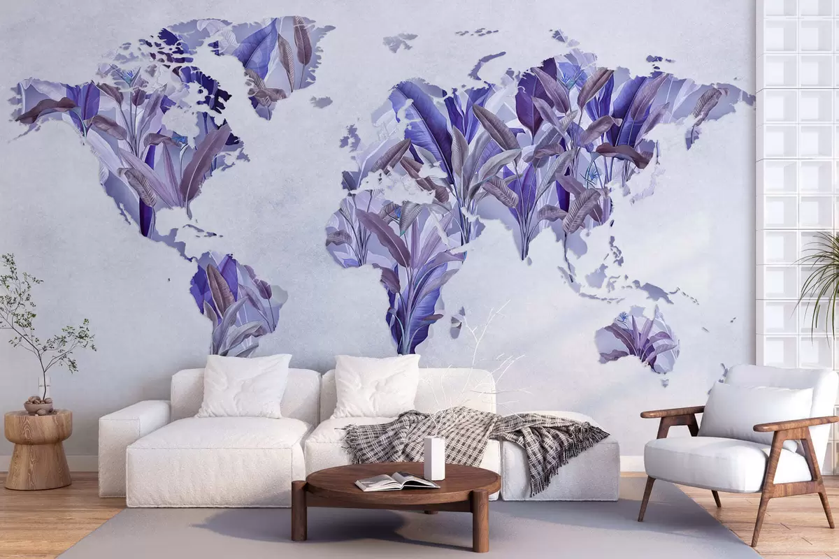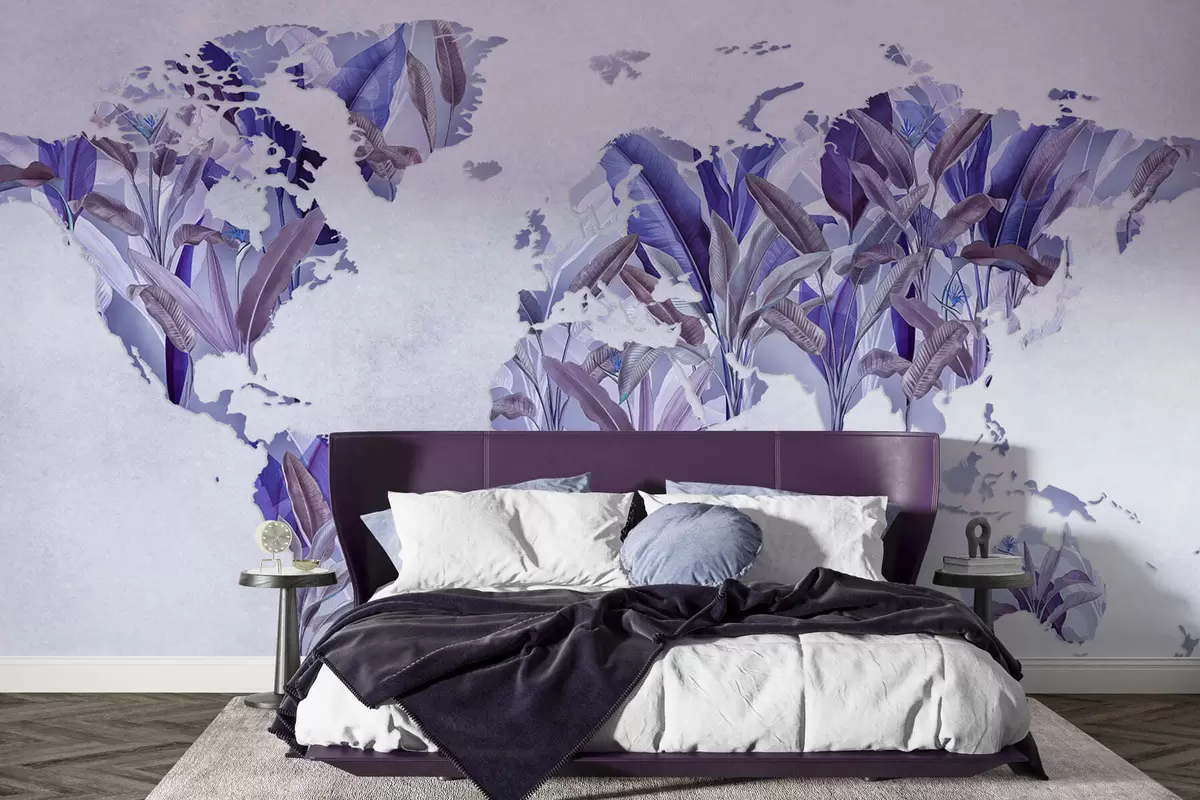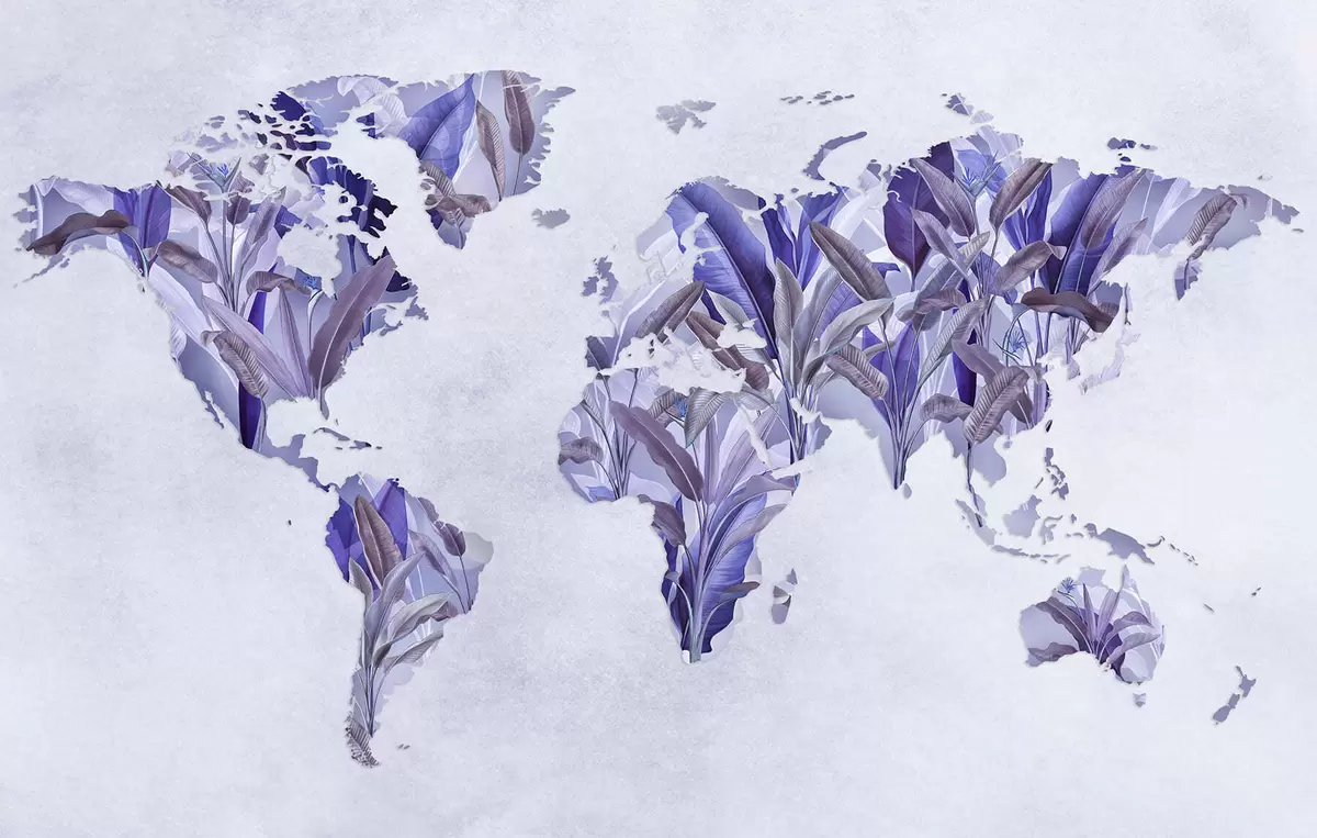 Fototapetai Iš bananų lapų pagamintas violetinis pasaulio žemėlapis Nr. c00007v1