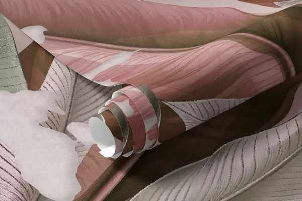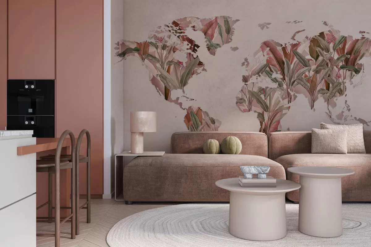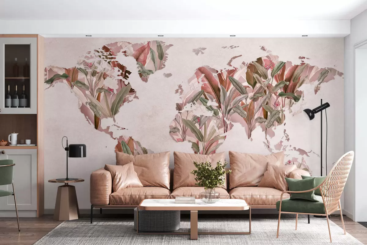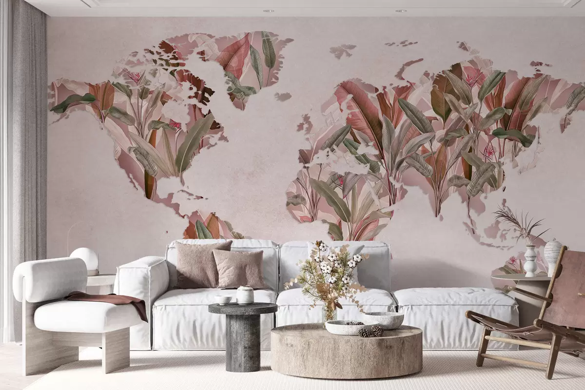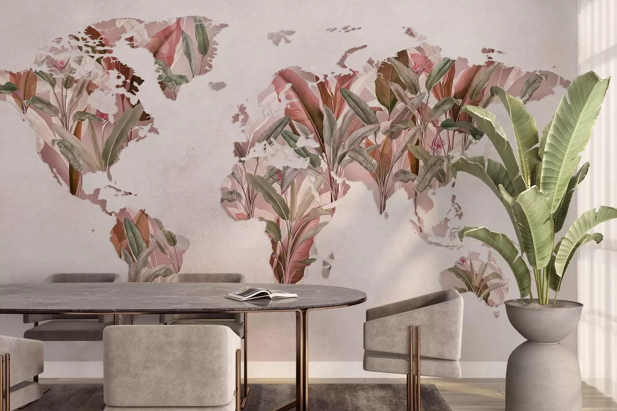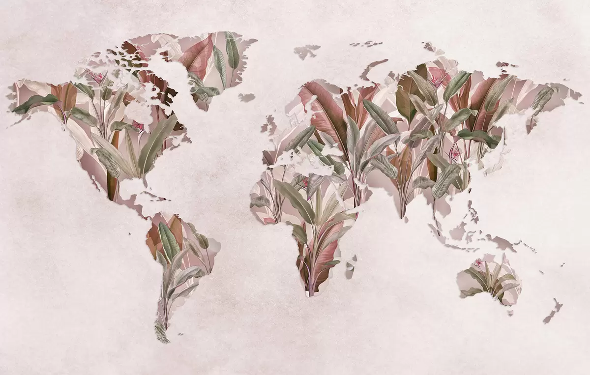 Fototapetai Rožinis pasaulio žemėlapis, pagamintas iš bananų lapų Nr. c00007v2