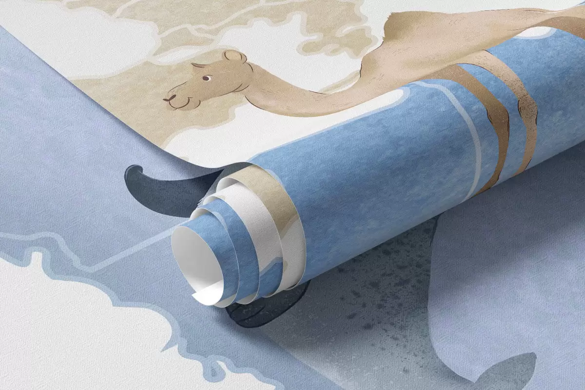 Fototapetai Akvarelės stiliaus mėlynas žemėlapis su gyvūnais. Užrašai prancūzų kalba Nr. c00012frv1