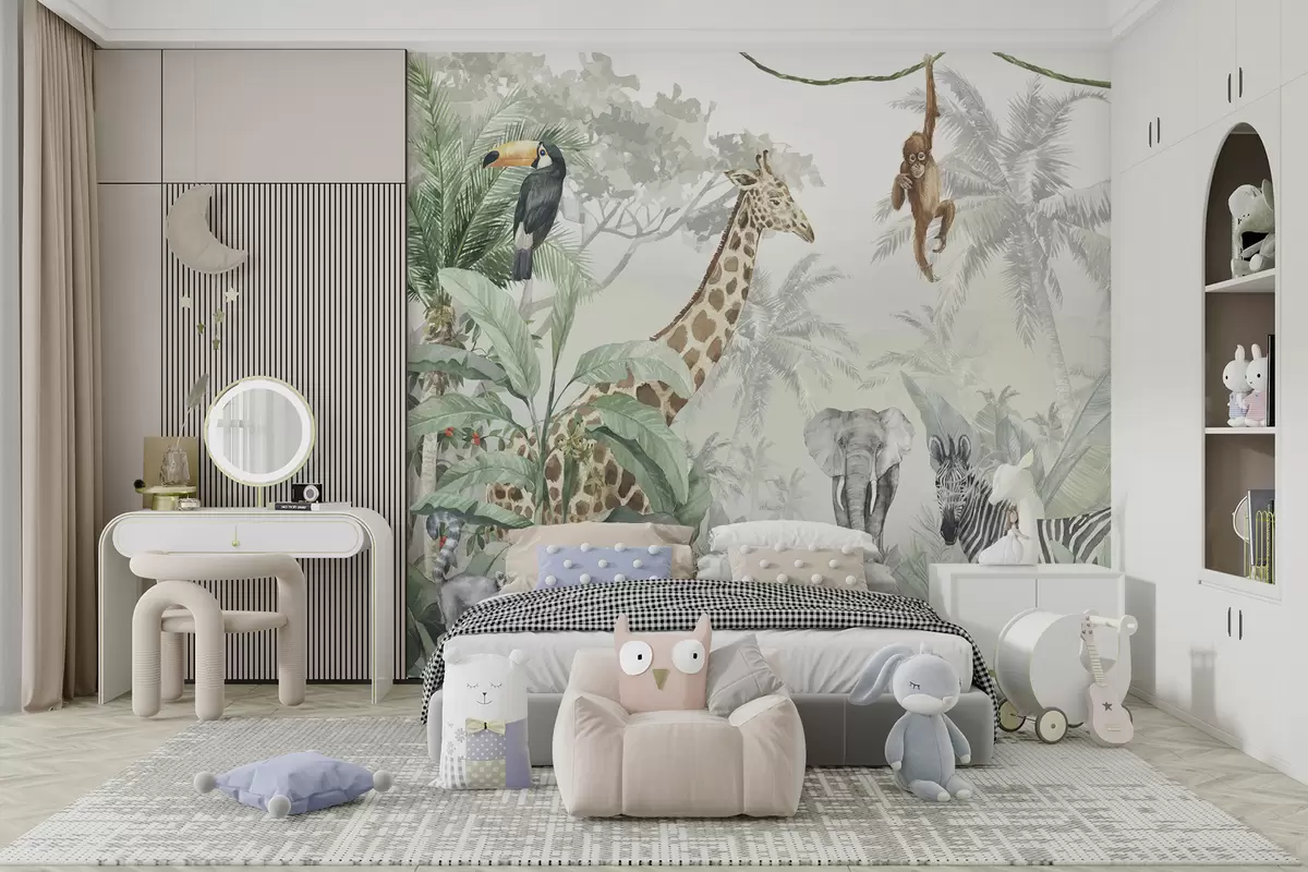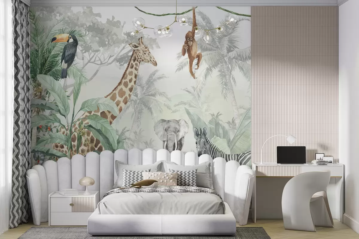 Fototapetai Džiunglių panorama su gyvūnais Nr. u74709d1