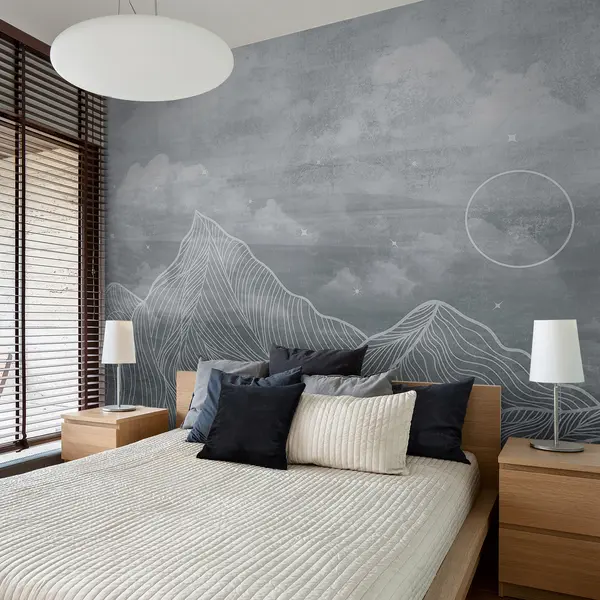 Fototapetai Grunge tekstūra su debesimis ir kalnais, pilka spalva, gamtos temos menas Nr. u98838v1