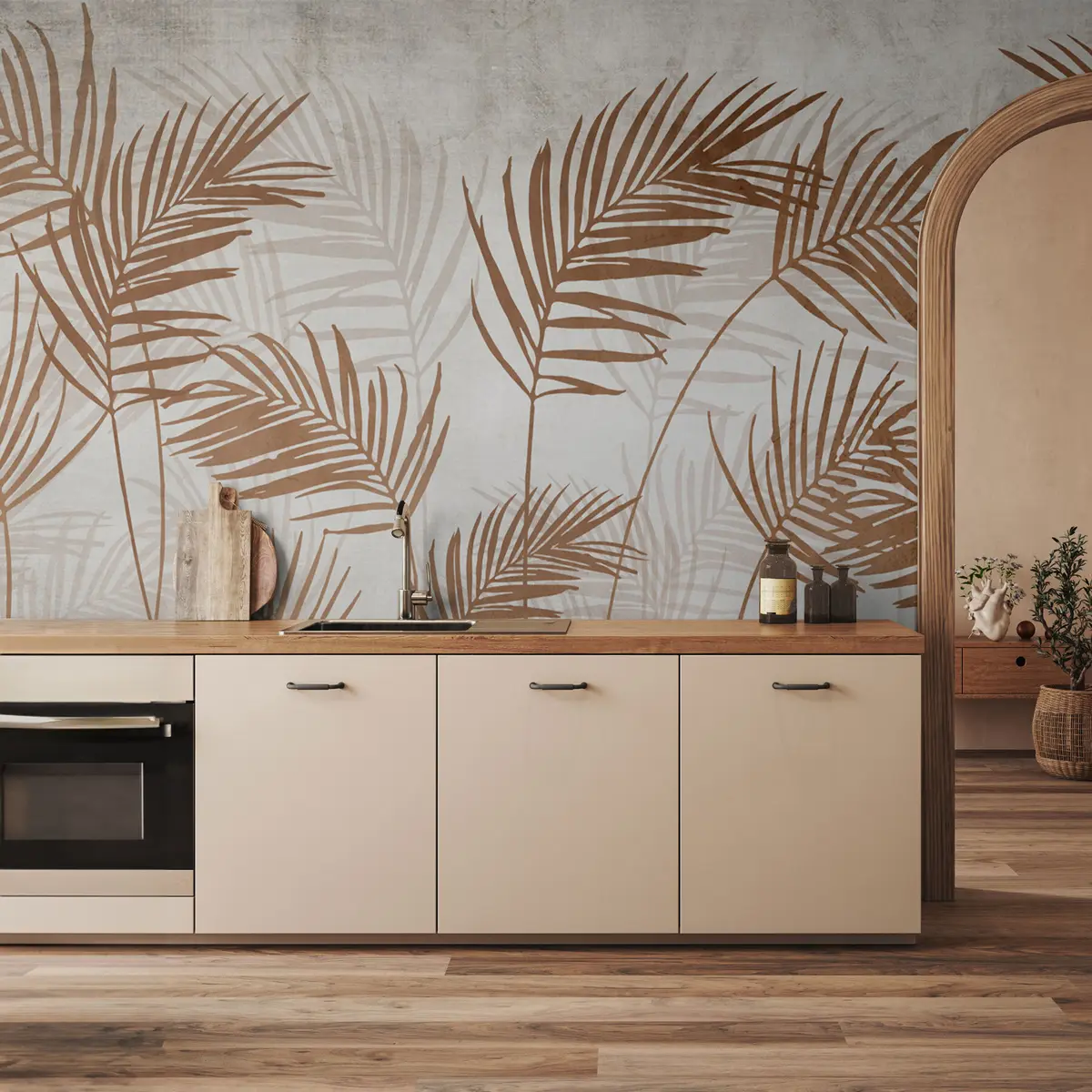 Fototapetai Tapetų dizainas su atogrąžų medžių ir lapų miglotame miške Nr. u98974