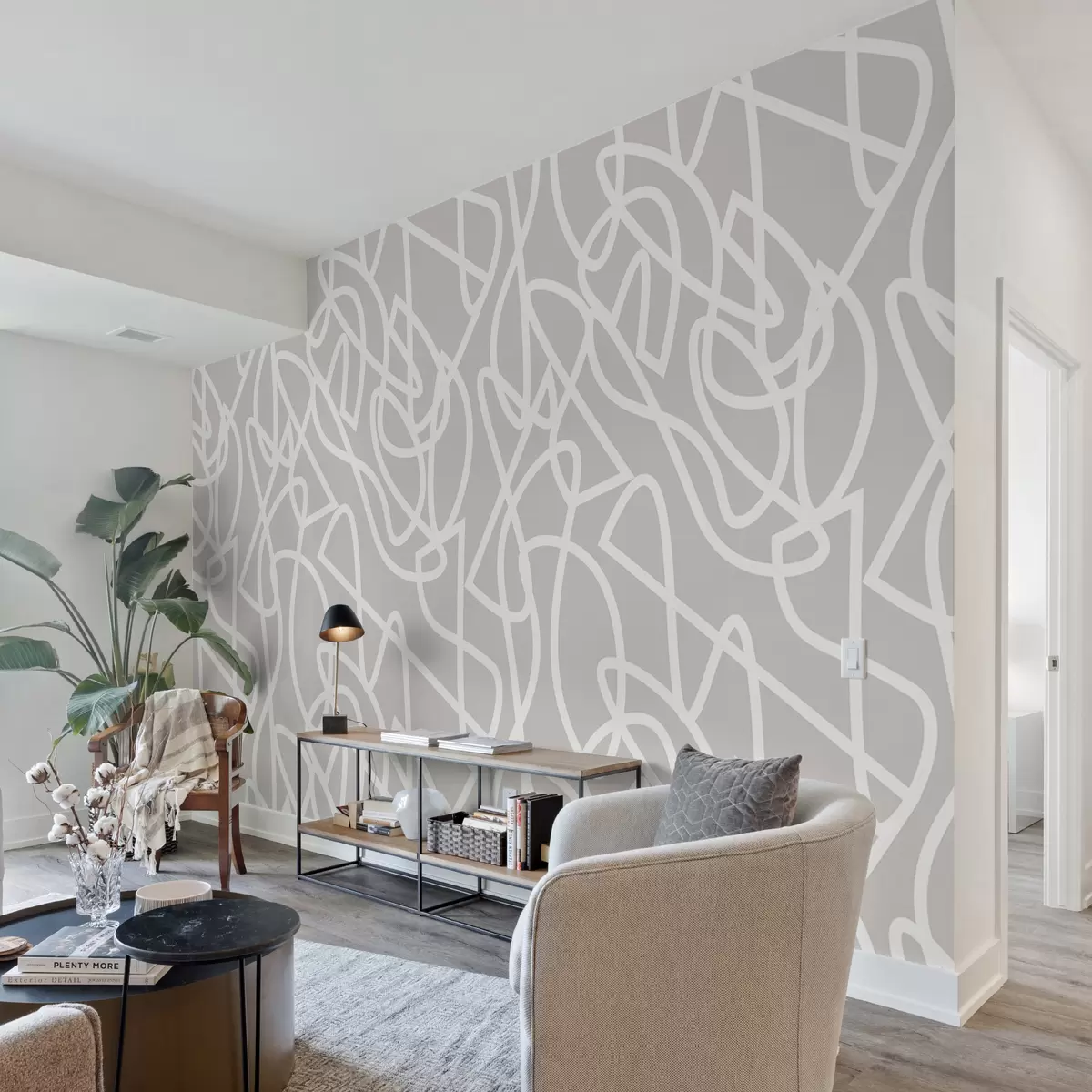 Fototapetai Madingų linijų boho stiliaus minimalizmas pilkoje spalvoje Nr. u99097v4