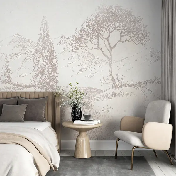 Fototapetai Toskanos kraštovaizdis, medis, laukas, minimalizmas, natūralios smėlio spalvos Nr. u99570