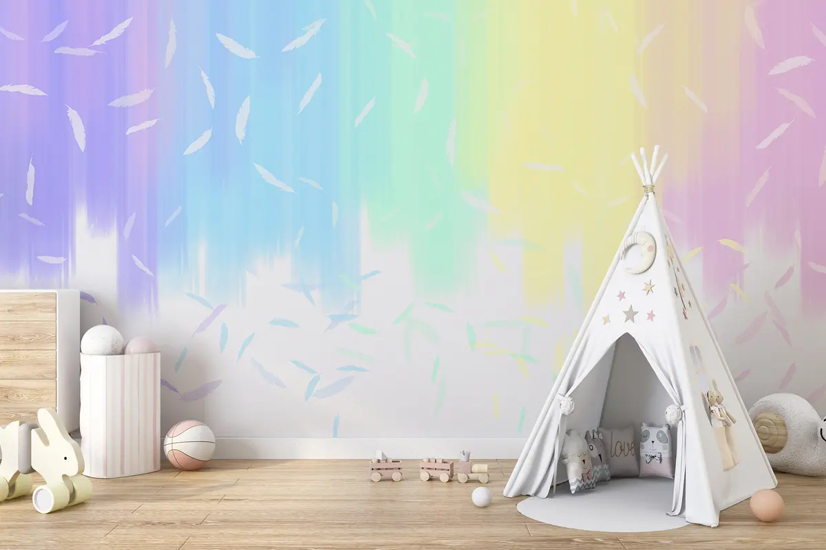 Fototapetai Vaivorykštė su plunksnomis, nepilnametis, pasaka, gradientas Nr. u99651