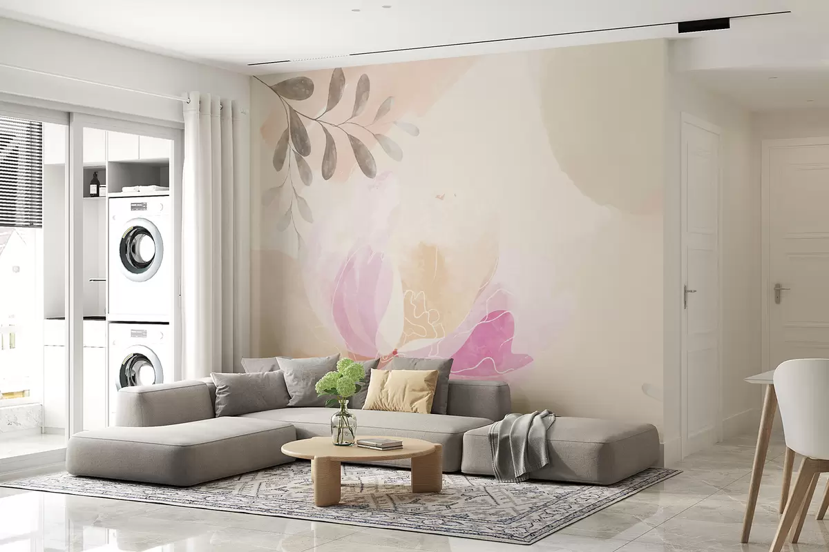 Fototapetai didelė gėlė, pastelė, akvarelė, smėlio spalvos Nr. w00396