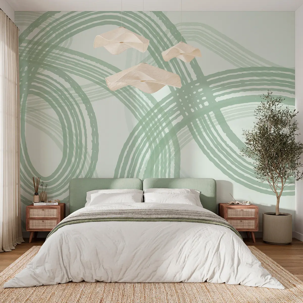 Fototapetai Abstrakčios linijos boho stiliaus žalia spalva Nr. w00417v2