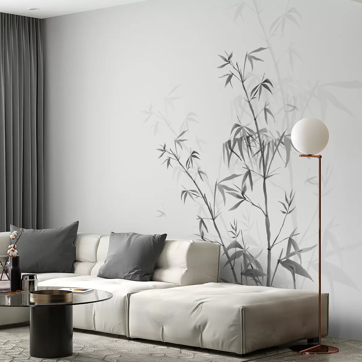 Fototapetai Minimalizmo stiliaus Japandi augalas bambukas Chinoiserie pilka spalva Nr. w00546v1