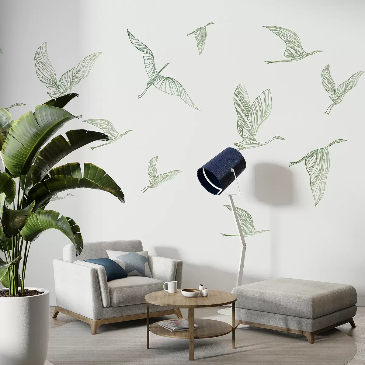 Fototapetai Skraidantys paukščiai linijinis menas, minimalizmas, gamta, žalios spalvos Nr. w00758v2
