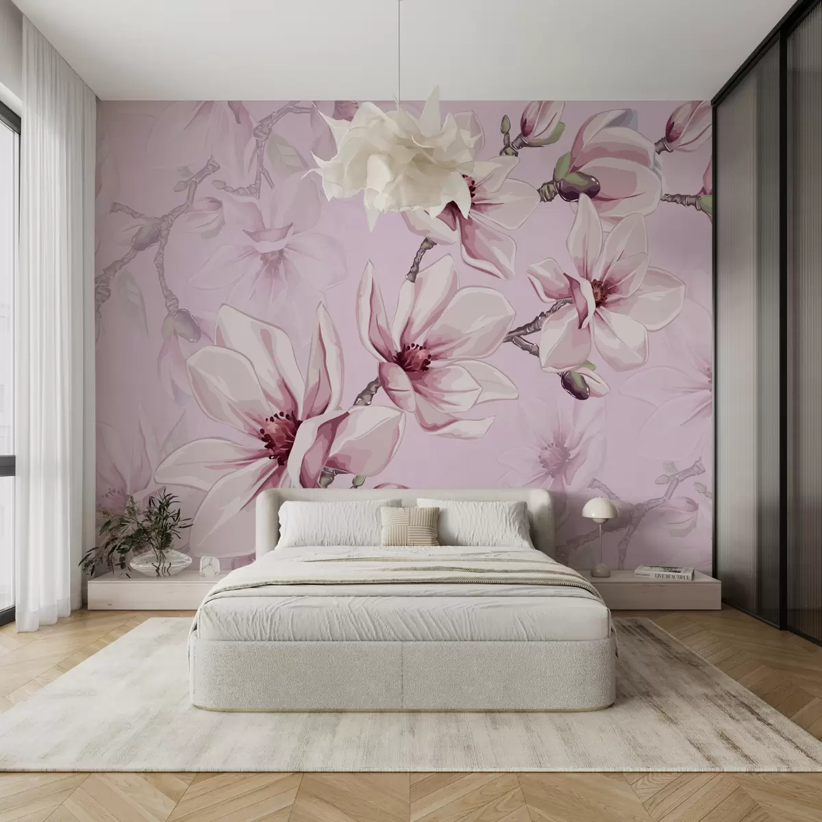 Fototapetai švelni rožinė magnolija iš arti Nr. w00982