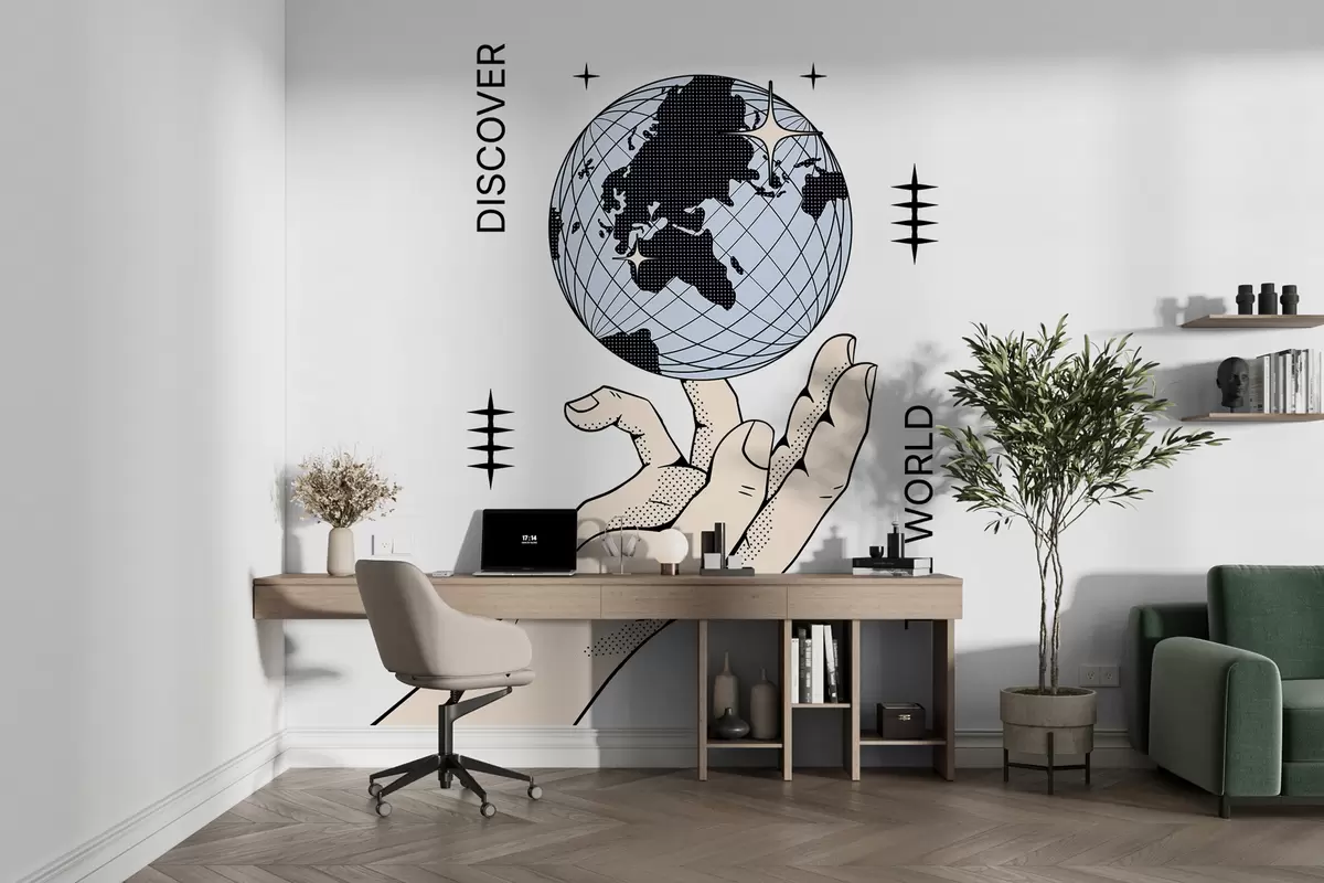 Fototapetai Smėlio spalvos ranka, sukasi gaublį baltame fone, skirta kambario ar biuro dekoravimui Nr. w00984