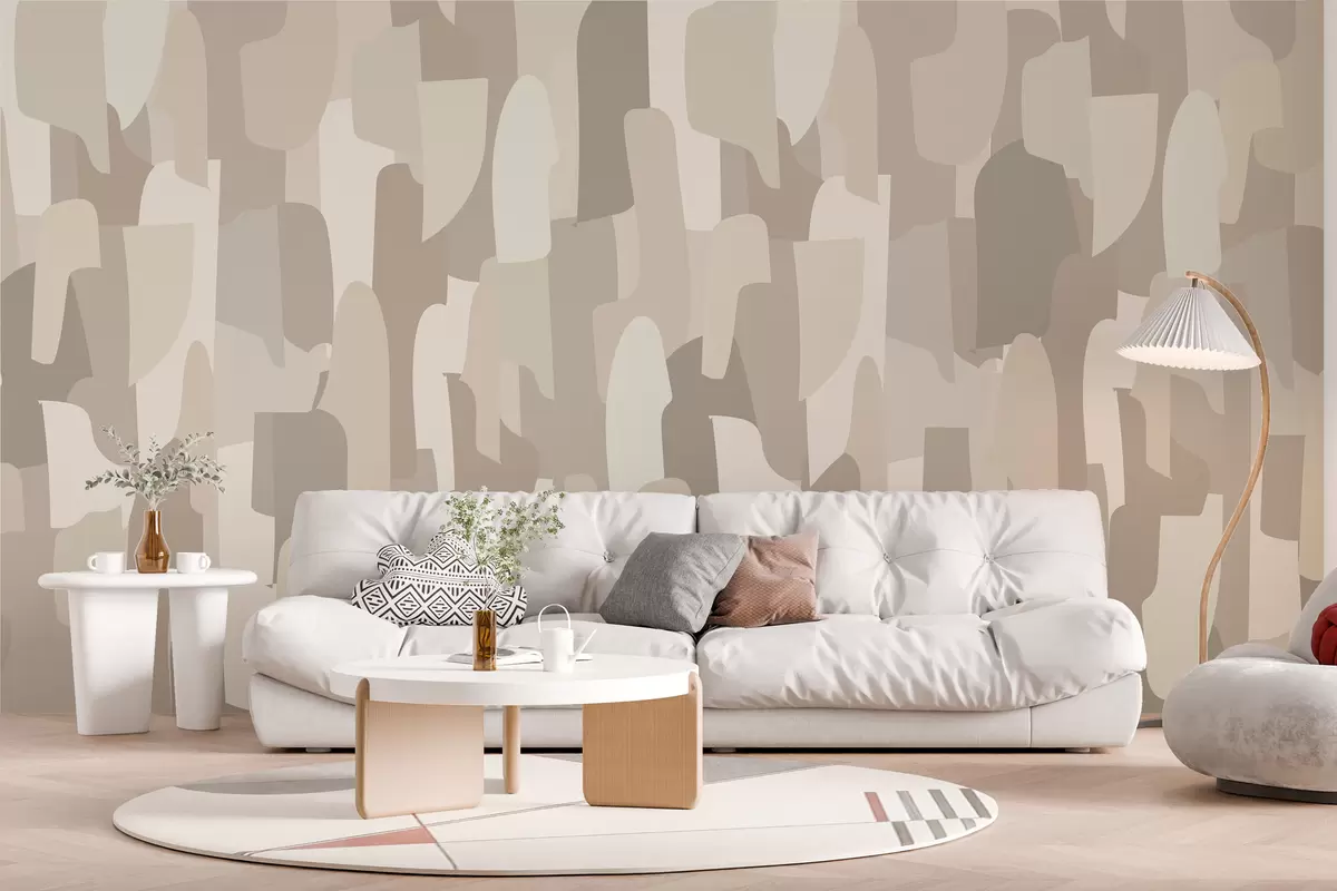 Fototapetai abstrakčios modernaus meno tapetai smėlio spalvos atspalvių imituojantys spalvotus gabalus, stilingam interjero dizainui Nr. w00987