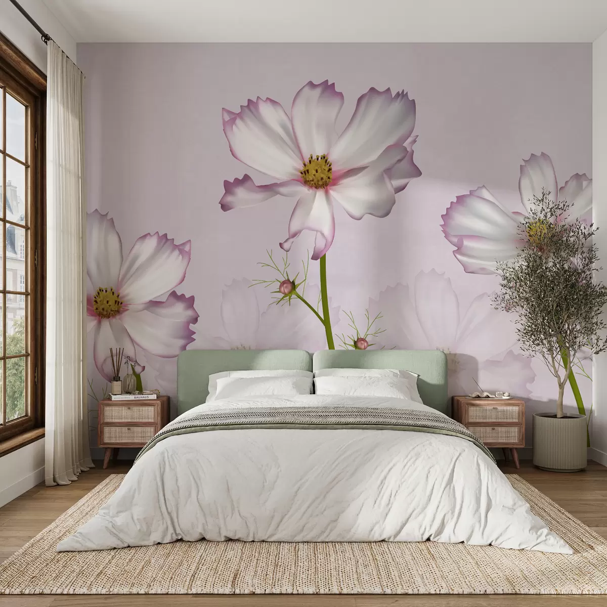 Fototapetai didelės laukinės gėlės, violetinės gėlės, akvarelė Nr. w01079