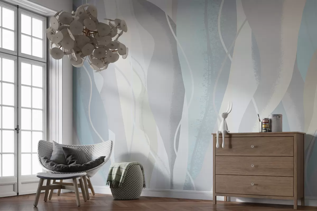 Fototapetai Šiuolaikiniai abstraktūs ekologiško stiliaus tapetai vėsiomis ir šiltomis spalvomis Nr. w01124
