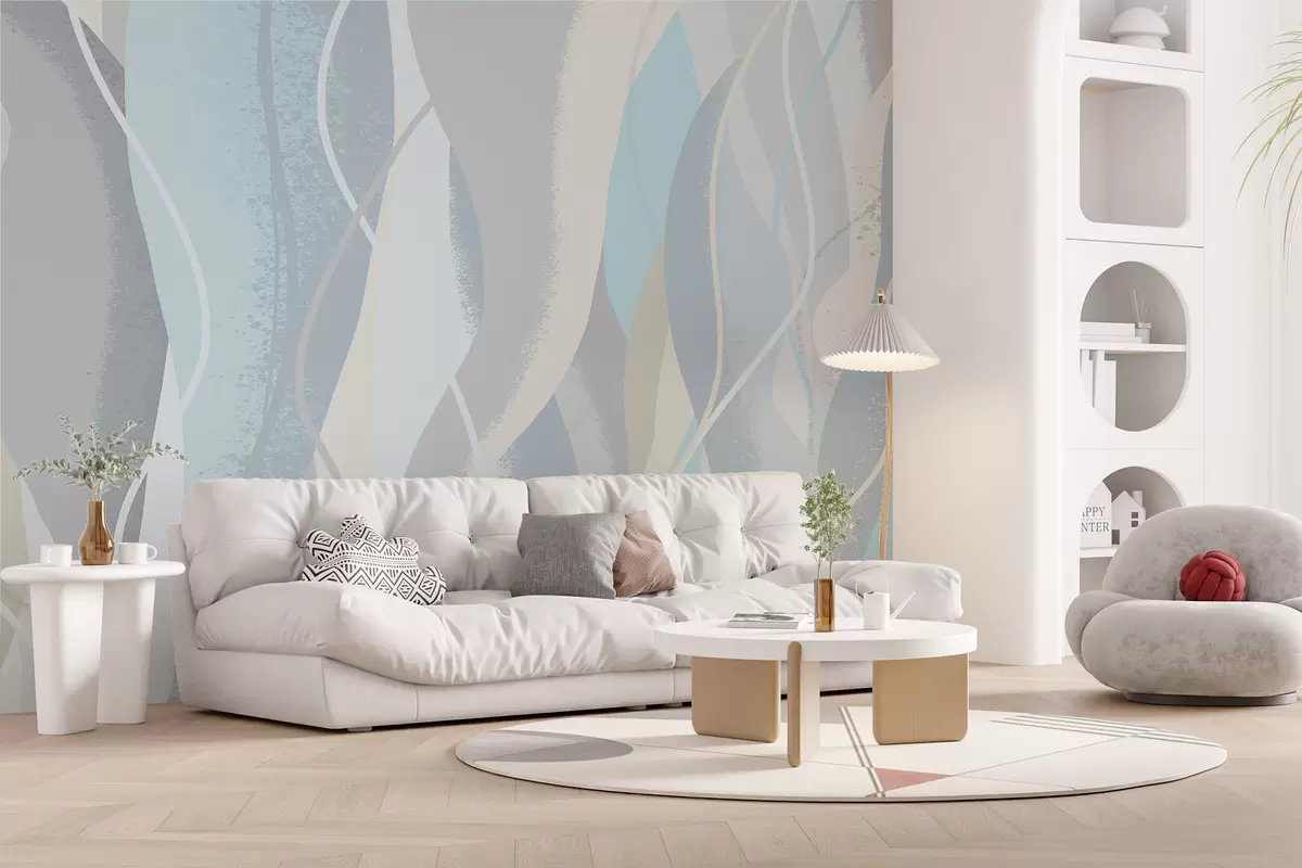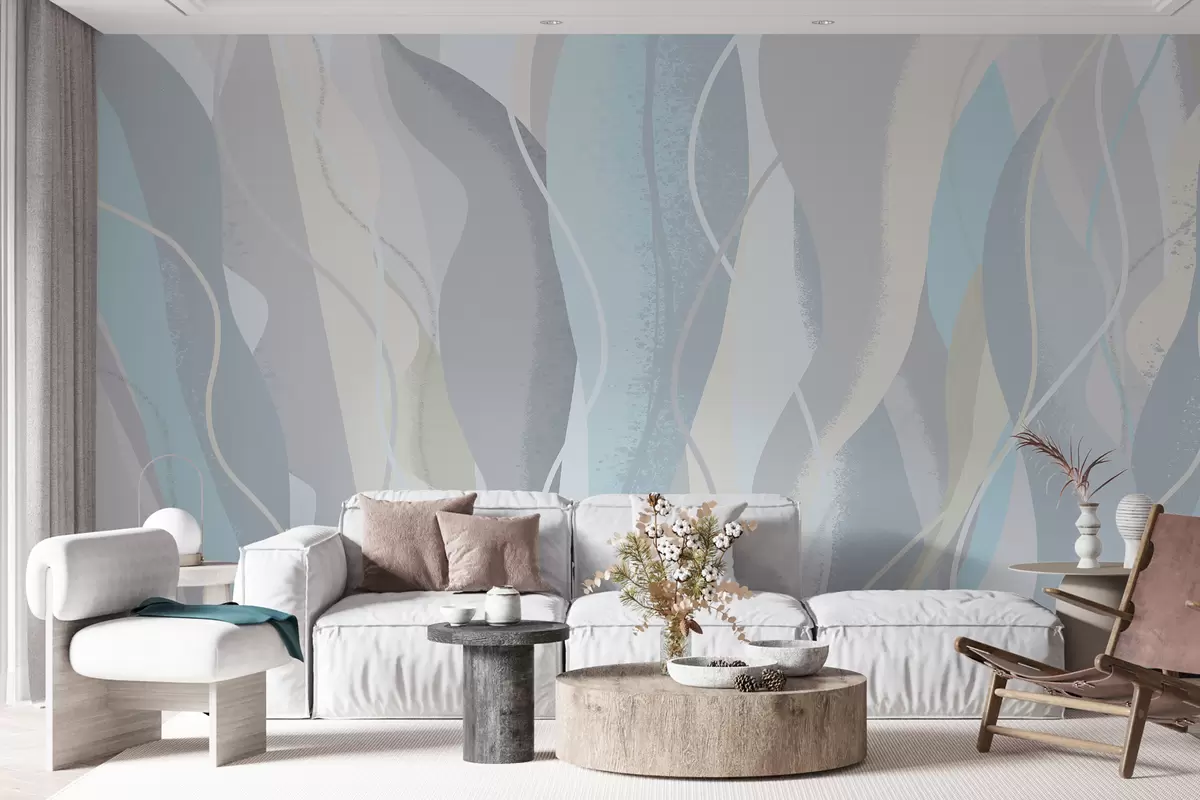 Fototapetai Šiuolaikiniai abstraktūs ekologiško stiliaus tapetai vėsiomis ir šiltomis spalvomis Nr. w01124