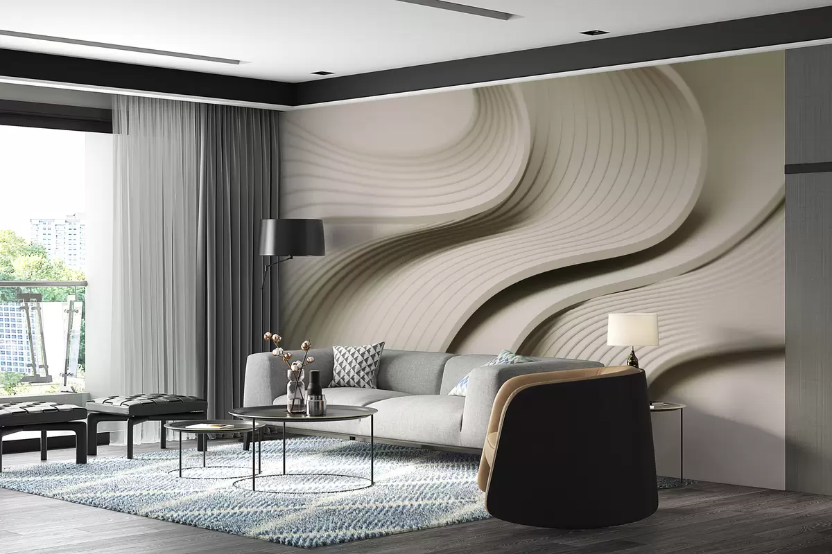 Fototapetai Elegantiškos apimties 3D stiliaus smėlio atspalvių bangos Nr. w01147v2