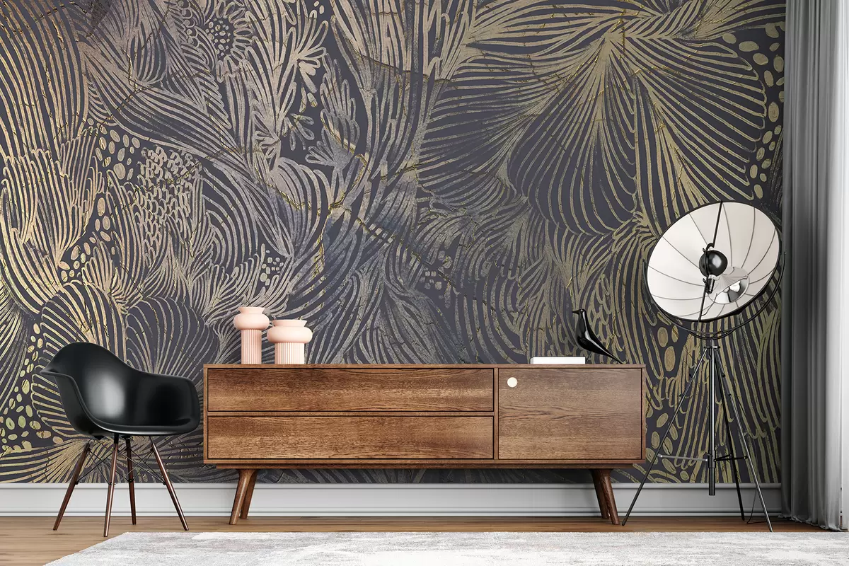 Fototapetai Abstraktus tekstūrinis prabangus raštas su persidengiančiomis organinėmis formomis ir linijomis Nr. w01243