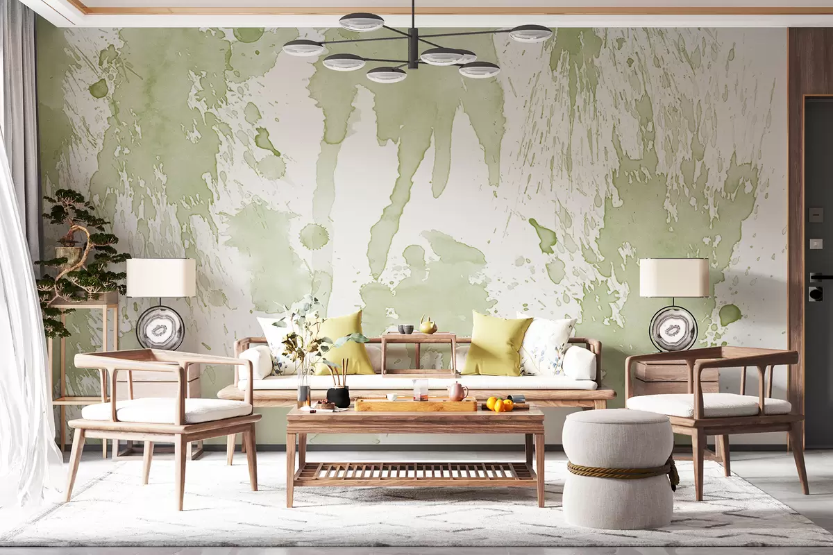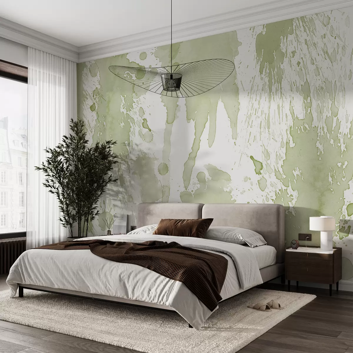 Fototapetai Akvarelės purslai, dažų piešimo abstrakcija, žalia spalva Nr. w01285