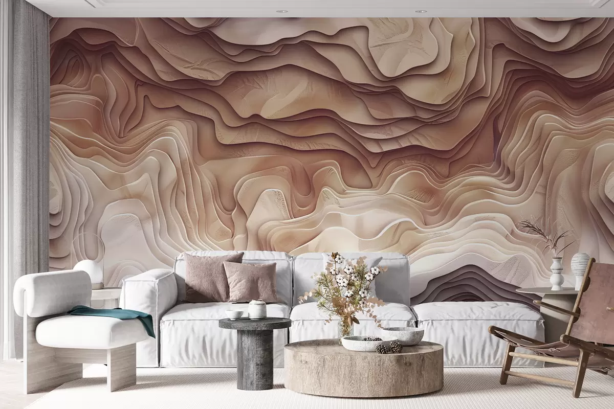 Fototapetai 3D topografinis žemėlapis su reljefo kontūrais šviesiai rožiniais tonais Nr. w01337