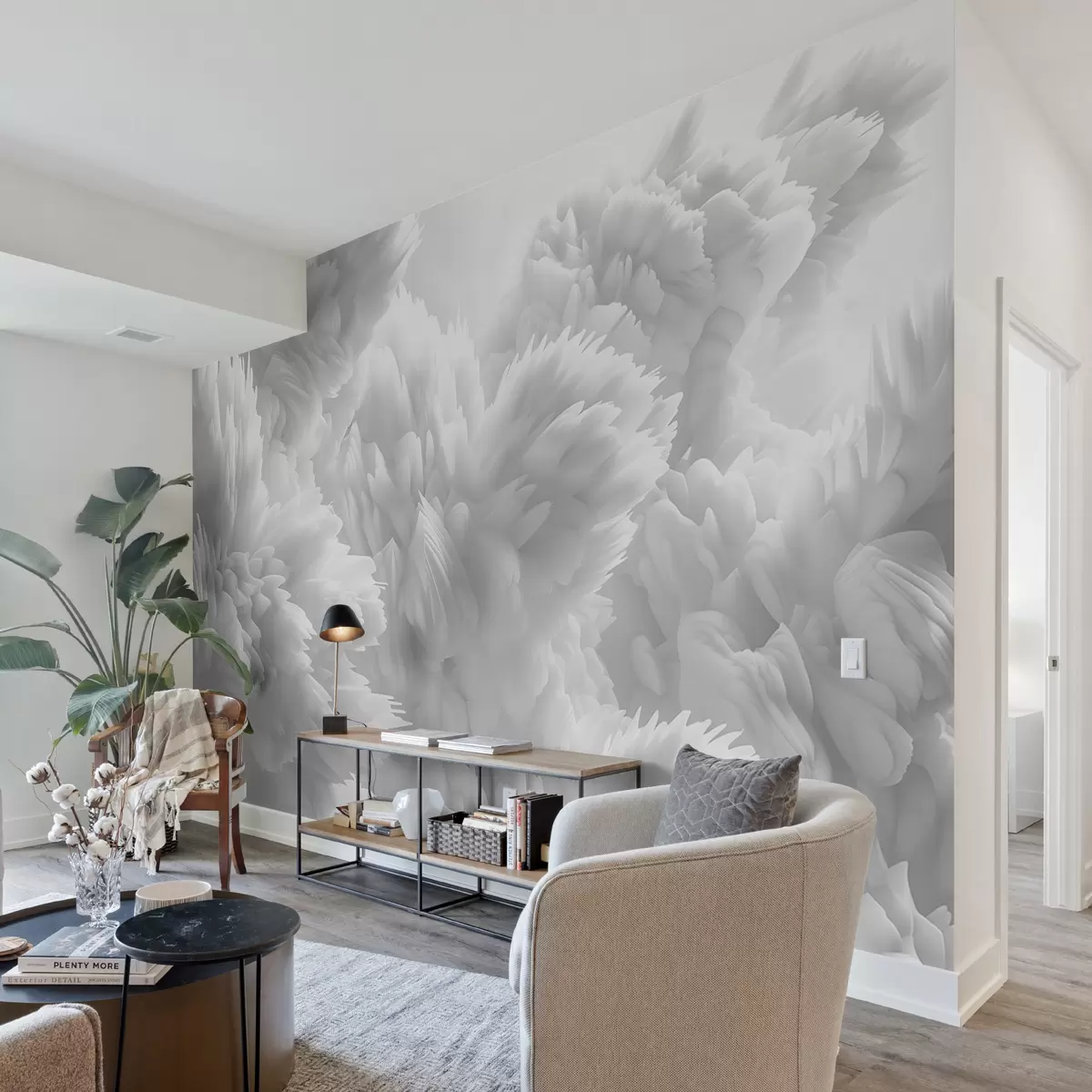 Fototapetai Abstrakti sniego kristalų kompozicija daugiasluoksniame plunksnų rašte eterinėje atmosferoje Nr. w01474