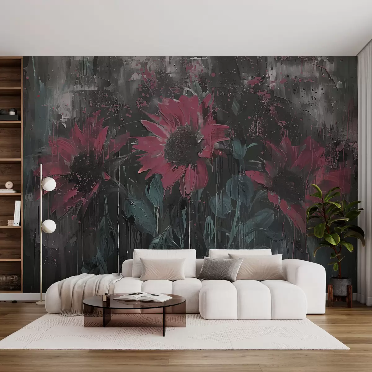 Fototapetai Abstraktus saulėgrąžų paveikslas, tamsiai pilkas fonas ir raudonai rožiniai tonai Nr. w01480v1