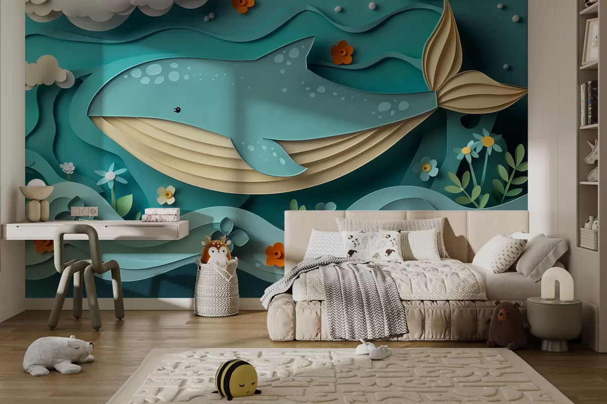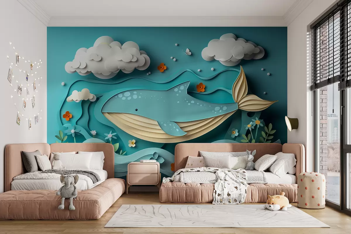 Fototapetai Žaismingas banginis debesyse karpiniu, 3D efektu Nr. w01496