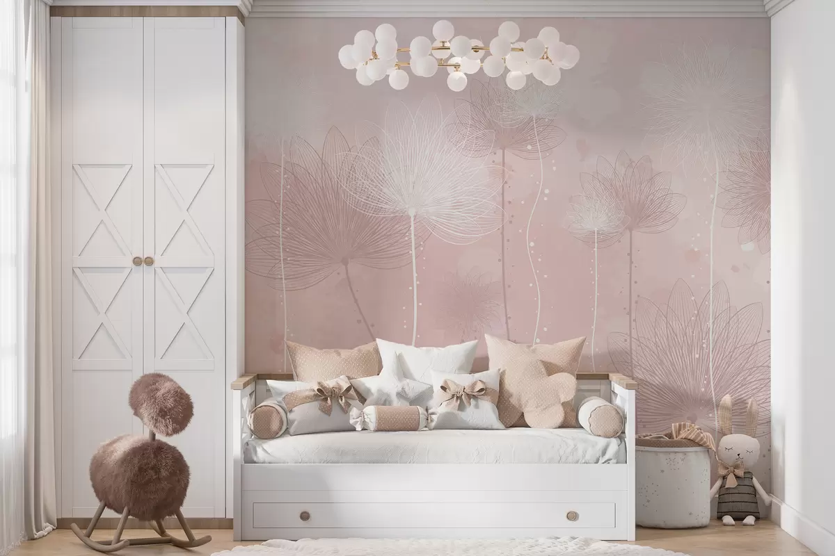 Fototapetai Subtilios gėlės subtiliame rausvame fone Nr. w01645v3