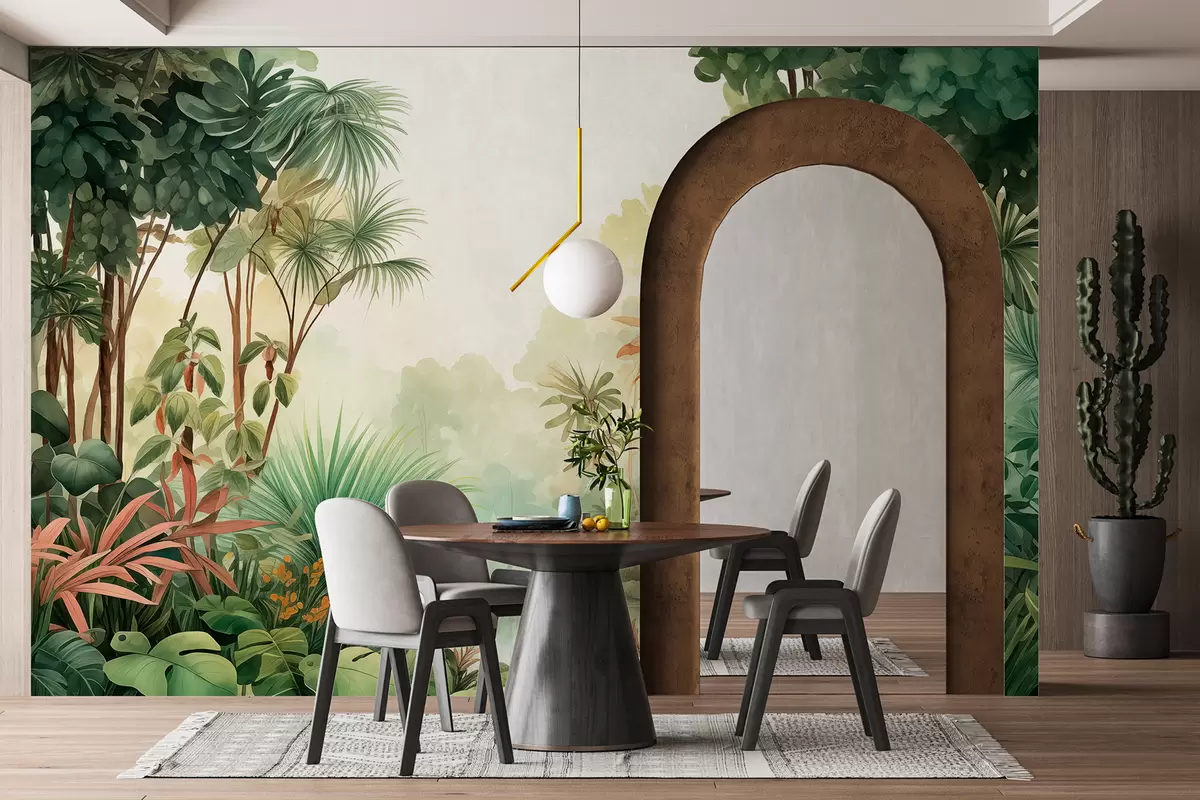 Fototapetai Akvarelė džiunglių miškas, palmės, ežeras, žaluma Nr. w01784