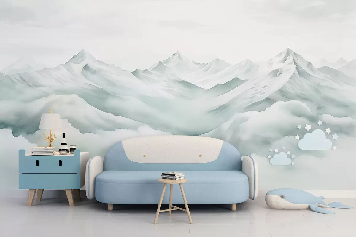 Fototapetai Kalnų kraštovaizdis, akvarelė, švelnios mėlynos spalvos Nr. w01787v2