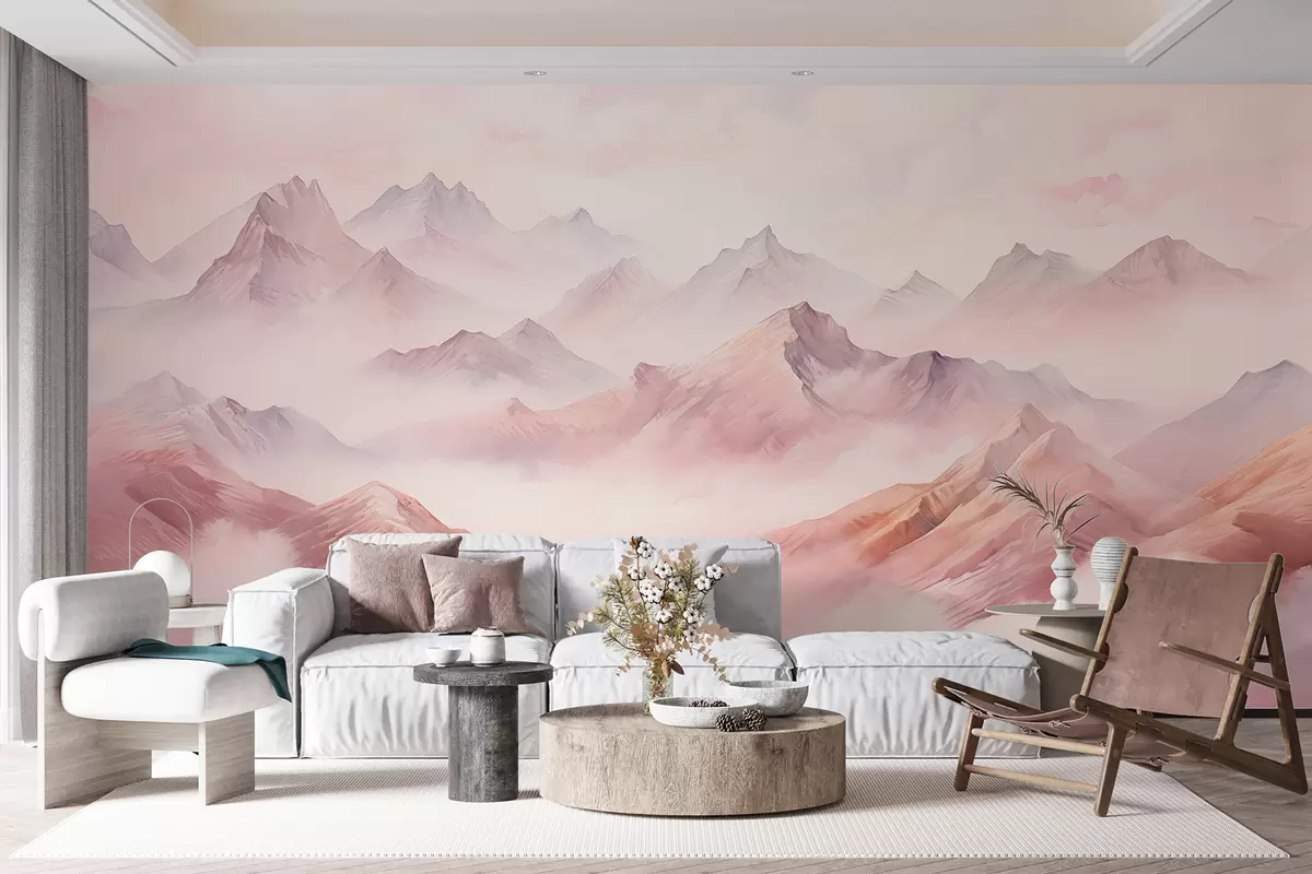 Fototapetai Kalnai su debesimis, akvarelė, švelnios smėlio ir rožinės spalvos Nr. w01790