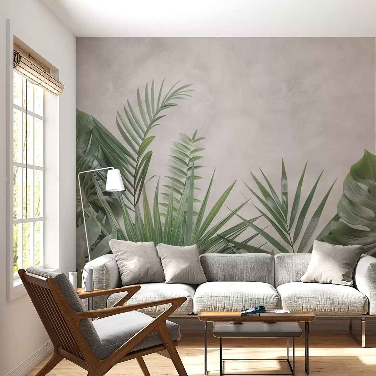 Fototapetai Atogrąžų krūmokšniai šviesaus betono fone Nr. w01898