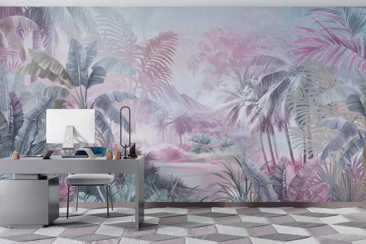 Fototapetai Švelnių mėlynų ir rausvų atspalvių atogrąžų miškas Nr. w01931v2