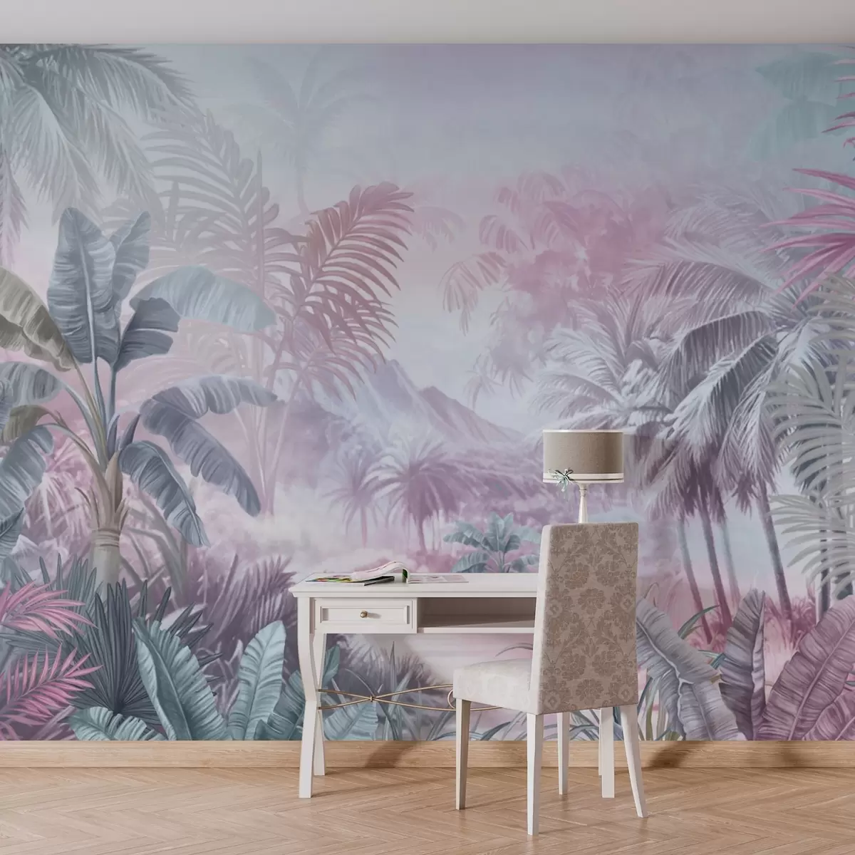 Fototapetai Švelnių mėlynų ir rausvų atspalvių atogrąžų miškas Nr. w01931v2