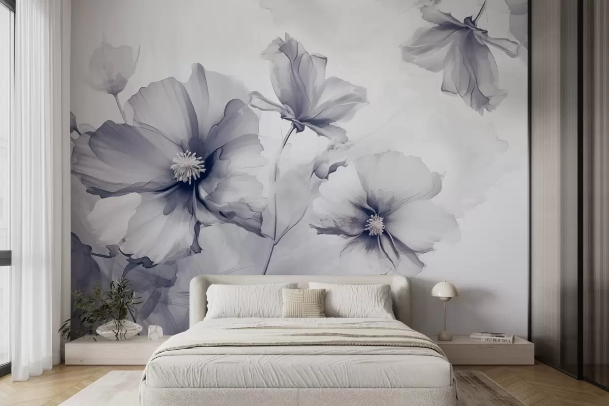 Fototapetai Erdvūs permatomi mėlyni žiedai, ištirpstantys ryto šviesoje Nr. w01938v2