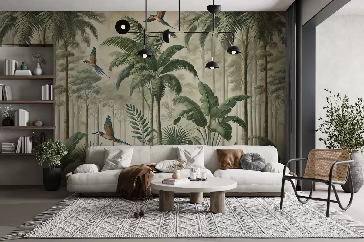 Fototapetai Atogrąžų kraštovaizdžio ir paukščių panorama Nr. w01957