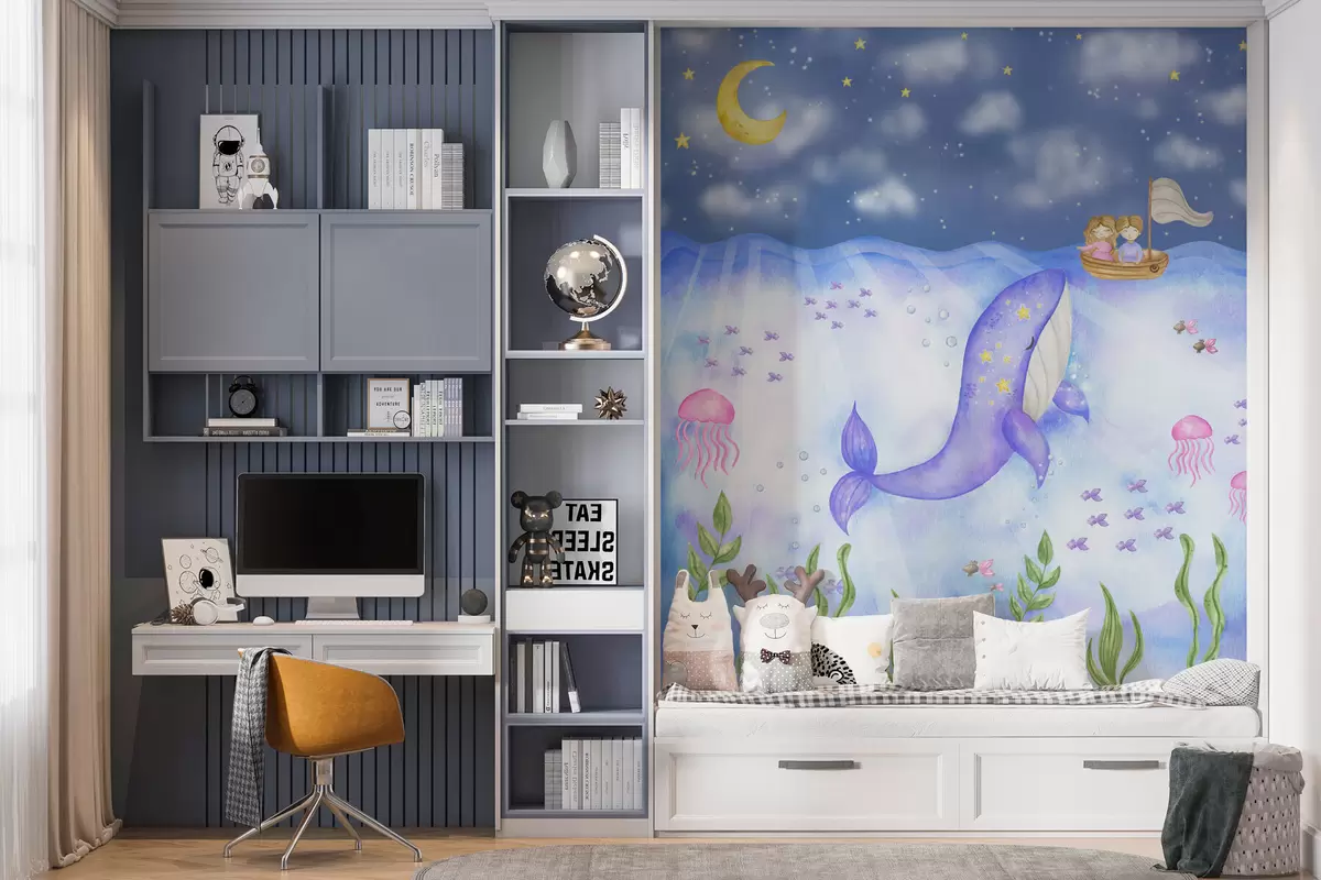 Fototapetai Banginis plaukia po žvaigždėtu dangumi Nr. w01965