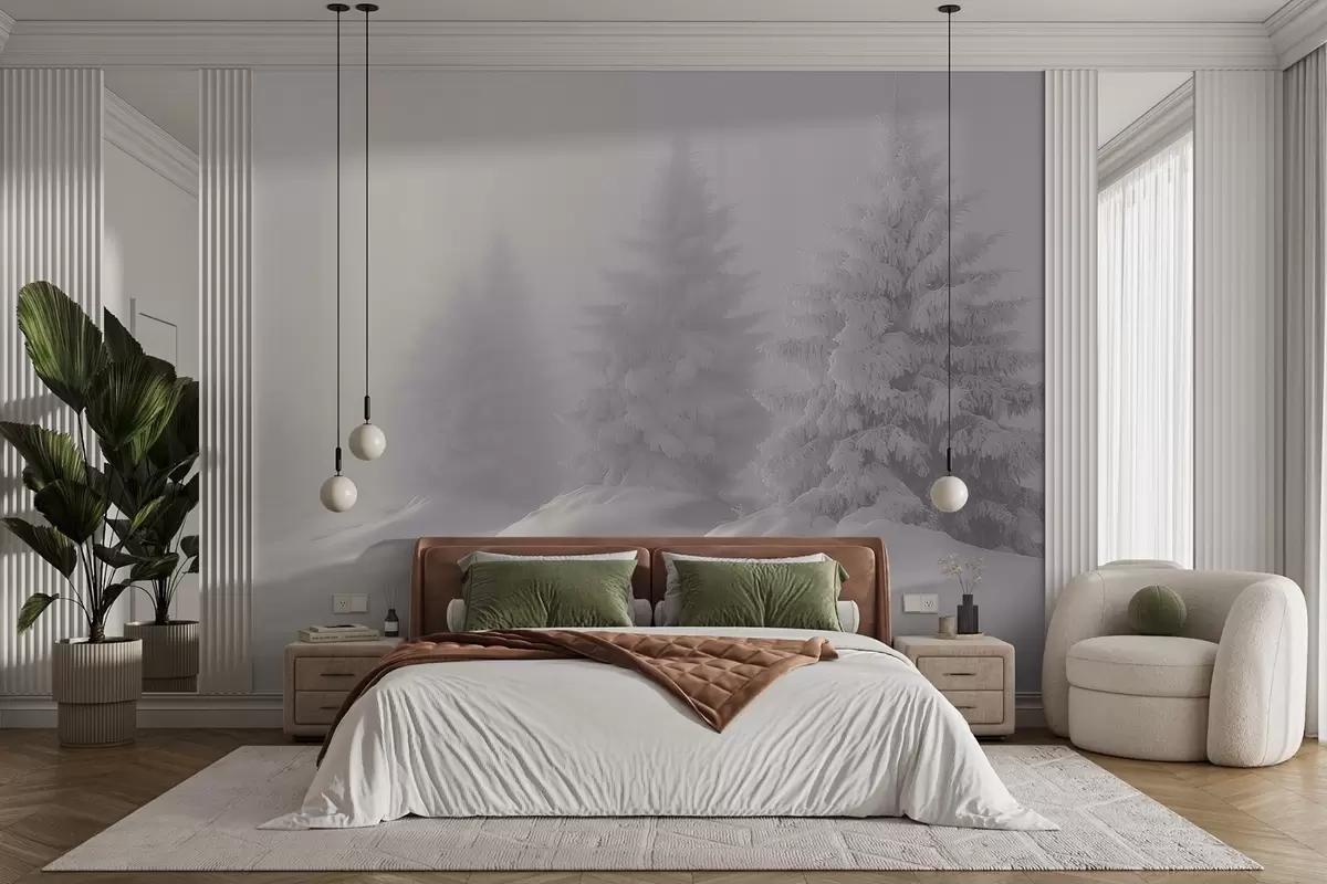 Fototapetai Snieguotos eglės vienatvėje miglotą rytą Nr. w02065