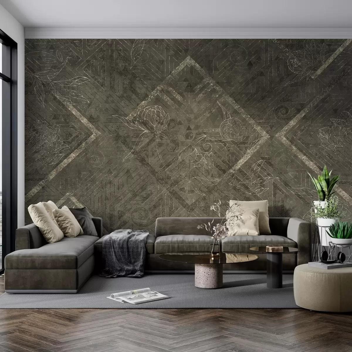 Fototapetai Grunge tekstūra su gėlių raštais geltona spalva Nr. w02079