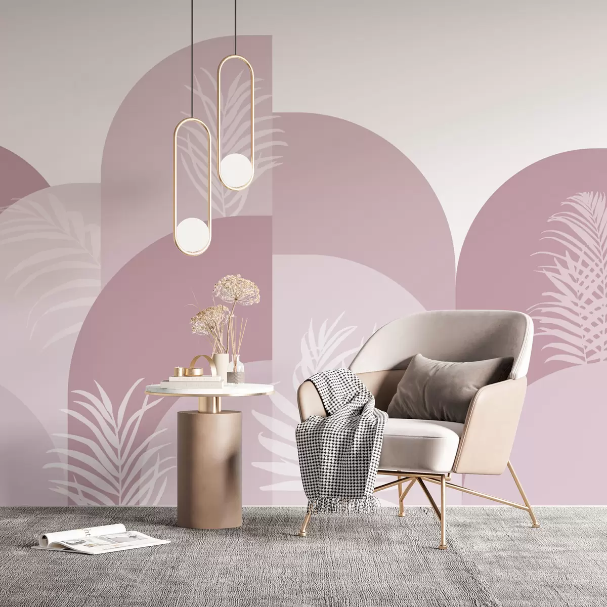 Fototapetai Madingos arkos su atogrąžų lapų rožine spalva Nr. w02101v4