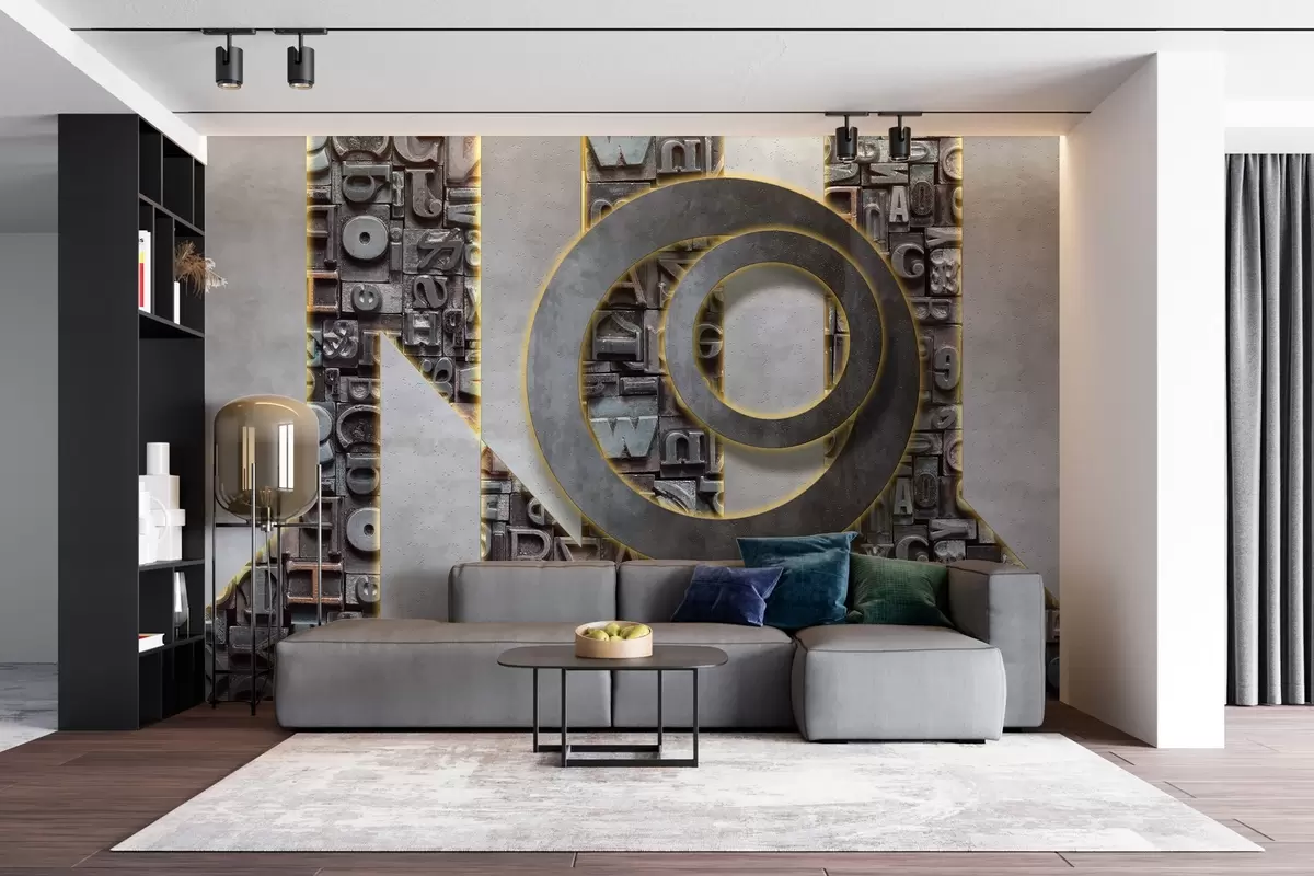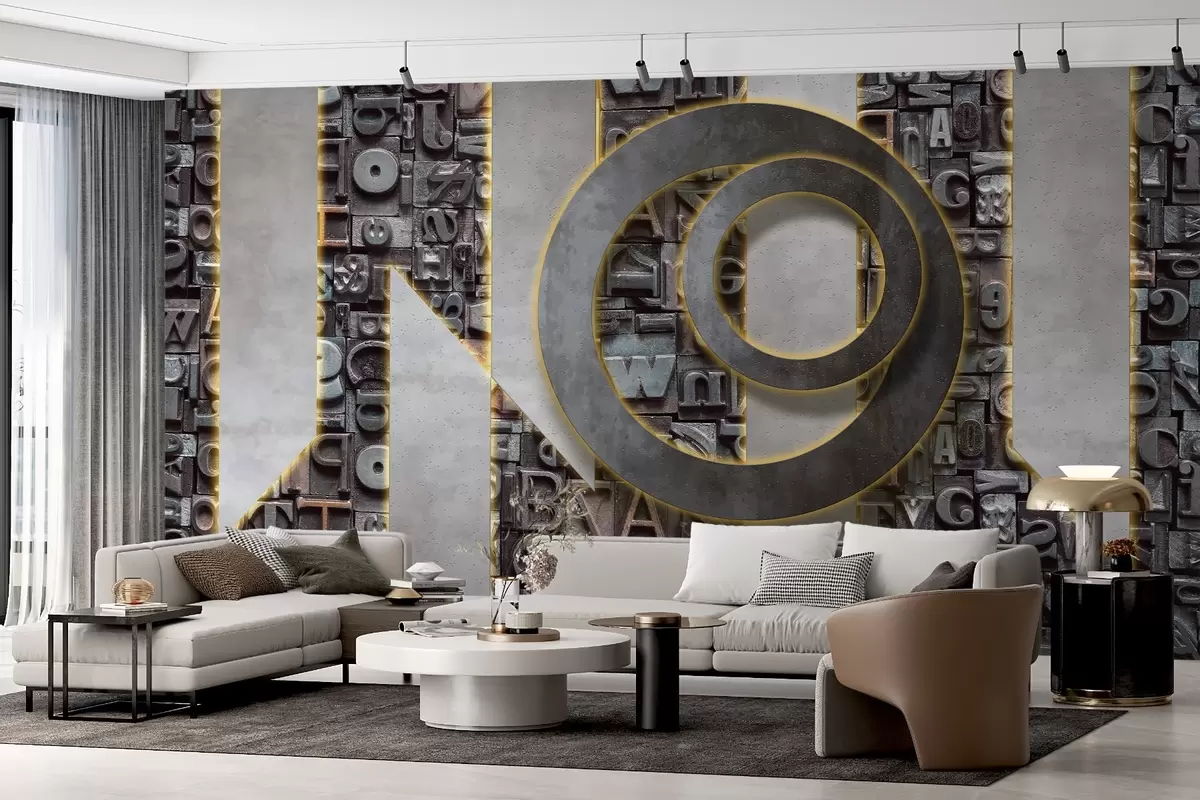 Fototapetai Šiuolaikiniai palėpės stiliaus tapetai su trimačių raidžių, betono ir apšvietimo imitacija Nr. w02125
