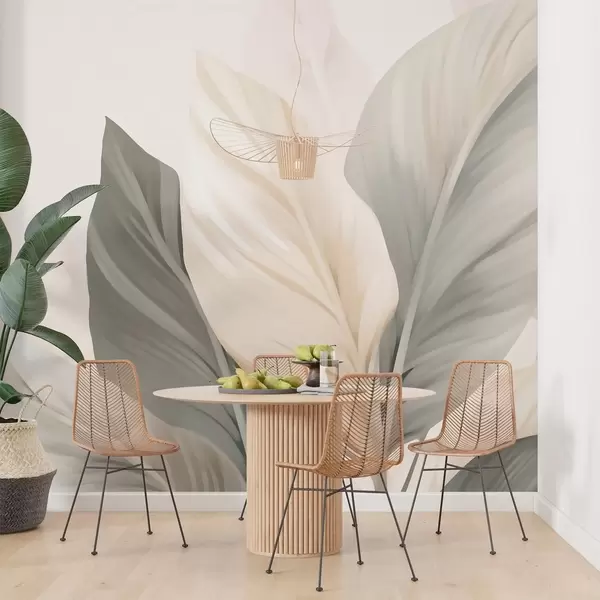 Fototapetai Smėlio ir pilki lapai šviesiame fone Nr. w02217