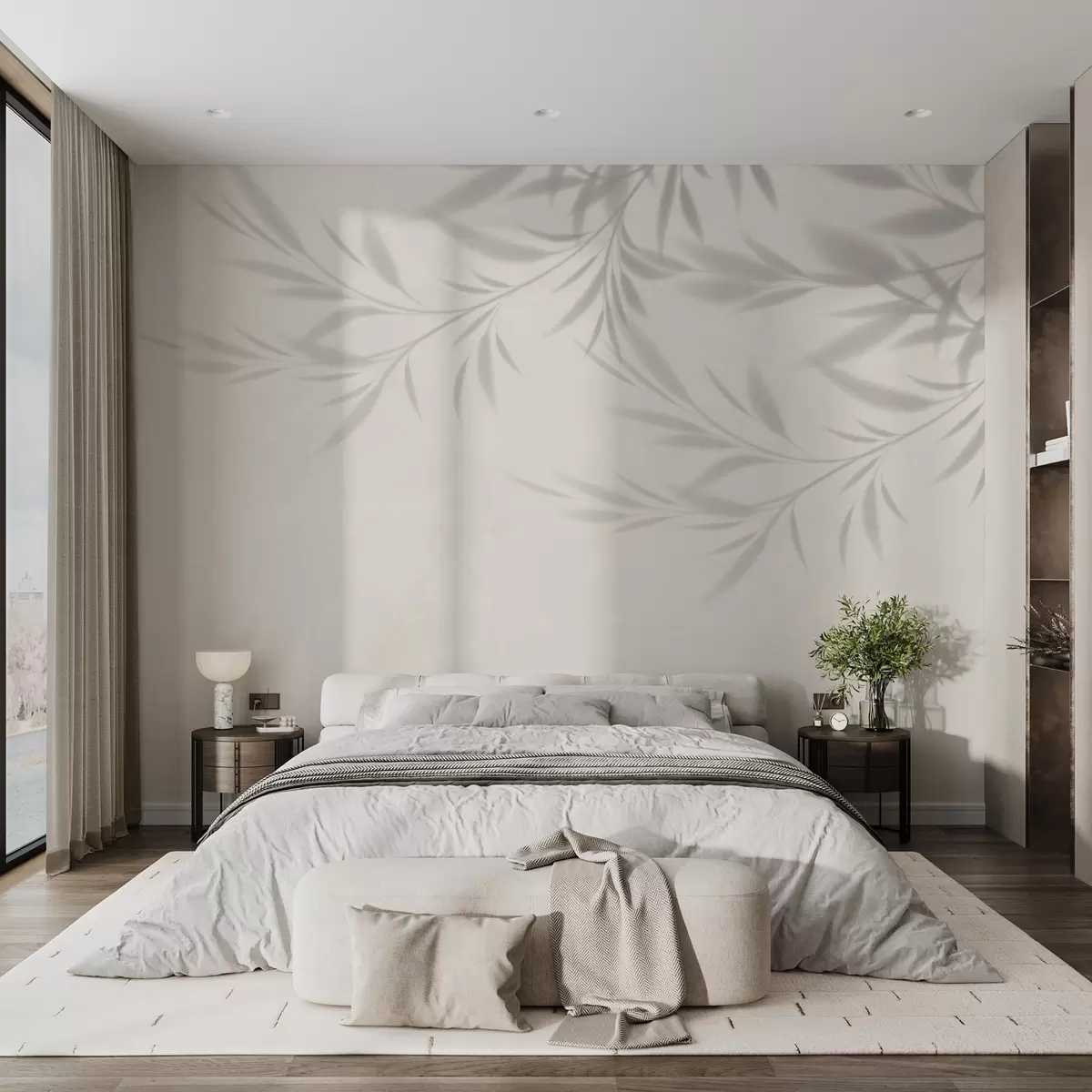 Fototapetai Šakų ir lapų šešėlis smėlio spalvos fone Nr. w02283v1