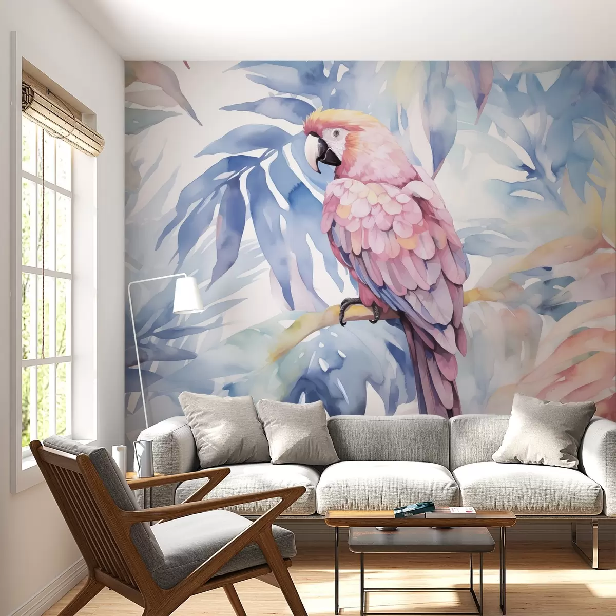 Fototapetai Rožinė papūga, sėdinti ant šakos, imituojanti paveikslą Nr. w02330
