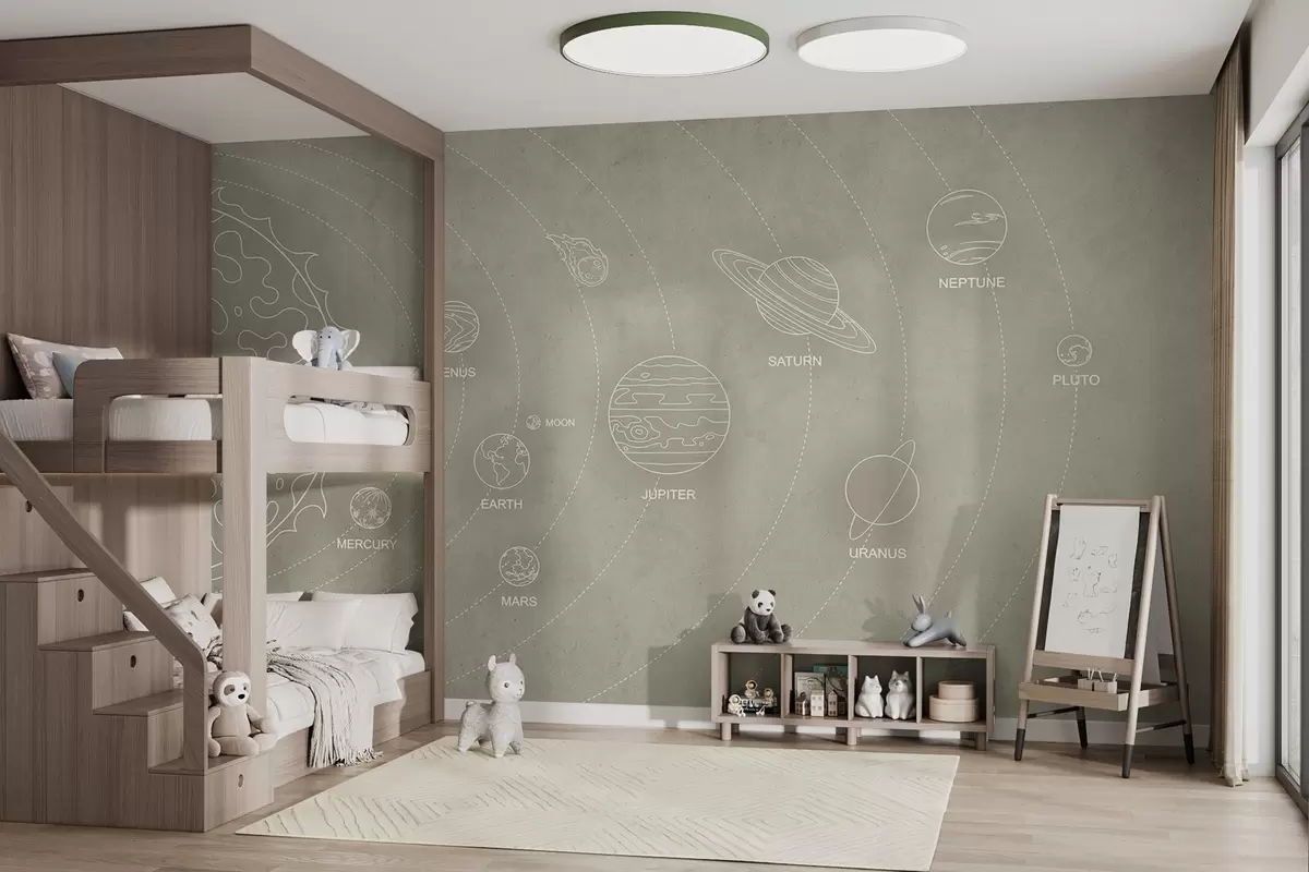 Fototapetai Minimalistinio stiliaus Saulės sistema šaltame smėlio spalvos tekstūruotame fone Nr. w02344