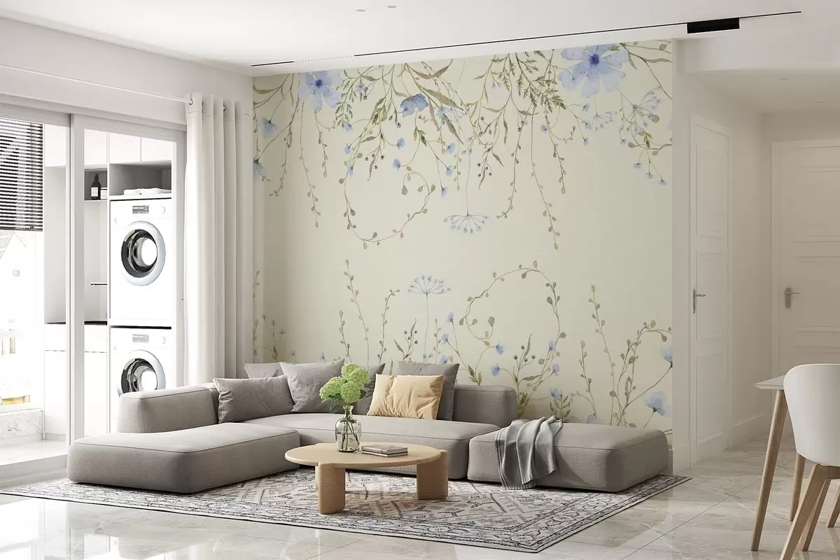 Fototapetai subtilios laukinės gėlės pieno fone Nr. w02348