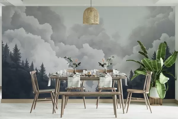 Fototapetai Aliejiniais dažais nutapyti tiršti debesys virš miško Nr. w02411