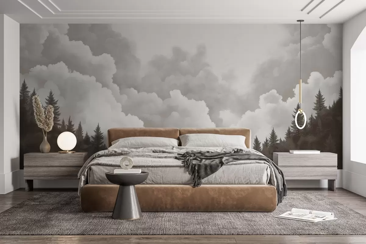 Fototapetai Aliejiniais dažais nutapyti tiršti debesys virš miško Nr. w02411v1